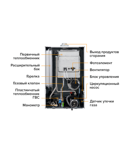 Двухконтурный котел со встроенным пультом управления, двухуровневым теплообменником, пульт управления Kiturami NCTR-100WR с подключением к Wi-Fi.